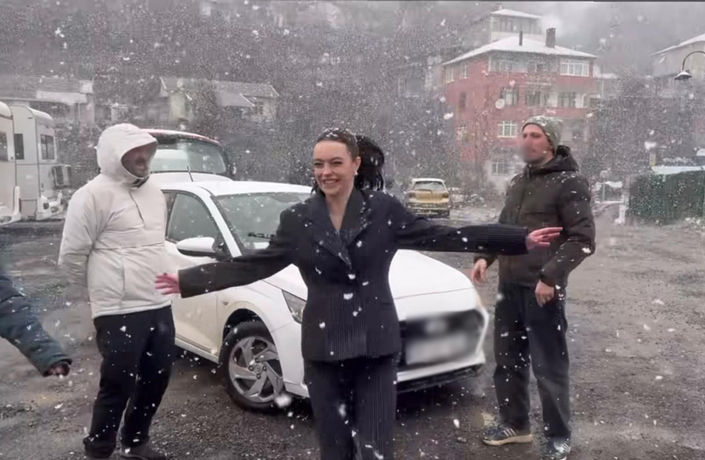 Sette kar yağışını ekip arkadaşlarıyla birlikte büyük bir mutlulukla karşılayan Melis Sezen, o sırada dans etti. Sezen, o anları sosyal medya hesabından yayımladı.